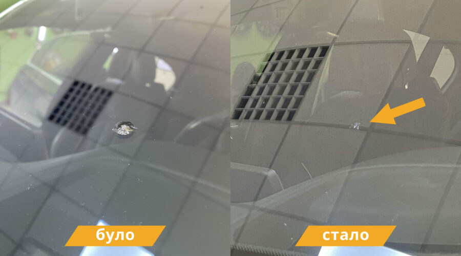 - Майстри використовують спеціальне вакуумне обладнання та прозорі полімерні смоли. Скол очищується від бруду та вологи, після чого порожнина заповнюється смолою і полімеризується. Завдяки цьому відновлюється прозорість скла та його міцність.